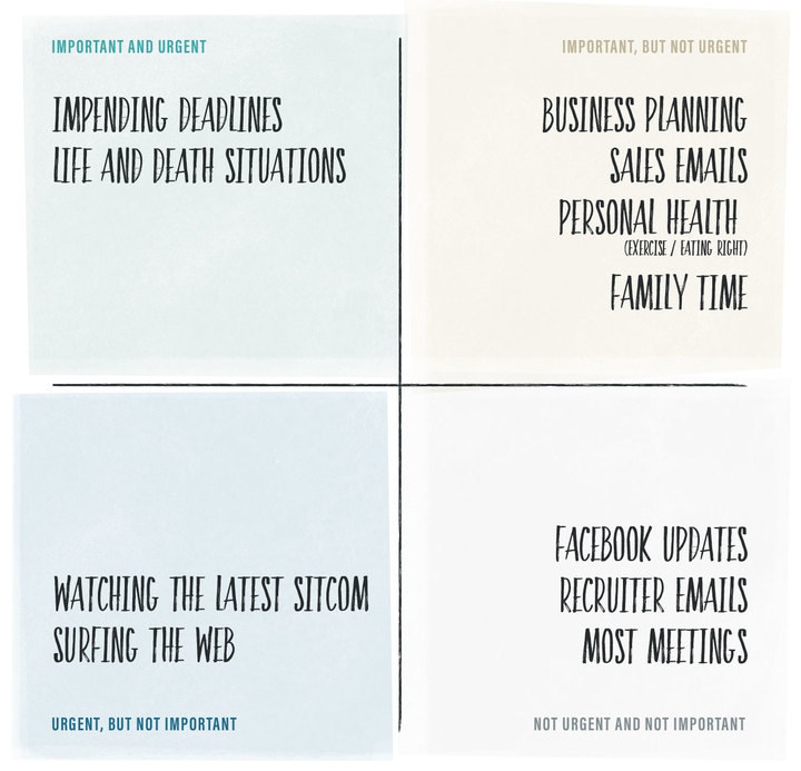 If you haven't seen a priorities quadrant, that's about to change. It really helped me wrap my head around the fact that just because something is urgent does not necessarily mean it's important. On the other hand, just because you lack a sense of urgency about something, it doesn't mean you should delay the work.